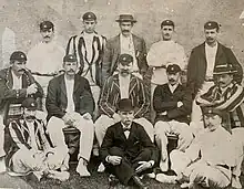 Surrey's County Championship winning side of 1894, with Baldwin seated on the ground, front, right (from a photo on display in the pavilion at The Oval)