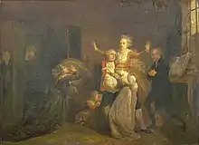 He also painted The last Interview between Charles I and his Children engraved by Thomas Gaugain, as well as some subjects from the poets and several good portraits. He was a member of the Florentine Academy, and exhibited at the Royal Academy in London in the years 1790 and 1791. He likewise engraved a few plates in aquatint, including the Couronnement de la Rosiere, in which he attempted to imitate the style of Philibert-Louis Debucourt, and also some portraits after himself, as well as two of Henry IV, king of France, and Sully, after Pourbus, which are signed with the fictitious name of Frieselheim.[1]