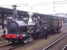 Beyer appointed and worked closely with Hermann Ludwig Lange (1837–92), in 1861. A native of his home town, Plauen, Saxony (now Germany), Lange trained as an engineer in Germany, became chief draughtsman in 1865, and chief engineer after Beyer's death. Lange was heavily involved in the development of the world's first successful condensing locomotives for the Metropolitan Railway. The Metropolitan initially ordered 18 tank locomotives, of which a key feature was condensing equipment which prevented most of the steam from escaping while trains were in tunnels, and have been described as "beautiful little engines, painted green and distinguished particularly by their enormous external cylinders."[11] The design proved so successful that eventually 120 were built to provide traction on the Metropolitan, the District Railway (in 1871) and all other 'cut and cover' underground lines.[11] This 4-4-0 tank engine can therefore be considered as the pioneer motive power on London's first underground railway;[12] ultimately, 148 were built between 1864 and 1886 for various railways, and most kept running until electrification in 1905. Metropolitan Railway No 23 which entered service in 1866 was not withdrawn until 1948 after 82 years.[1] It is now an exhibit in the London Transport Museum in Covent Garden.