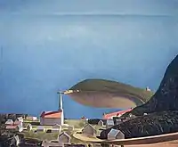 Comfort was commissioned to design a mural for Toronto's North American Life Building in 1932, the first in many he completed. The following year he met the American Precisionist Charles Sheeler. One of the artist's most celebrated works, Tadoussac of 1935, suggests the influence of Sheeler due to its clear crisp colours and shapes.[2]