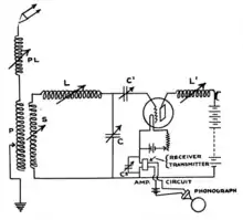 After the passage of the Radio Act of 1912, he was licensed to use the call sign 2MM from 1913 to 1915. At the experimental wireless station inside his home in Westfield he operated a 450 watt amateur station.[16] The equipment he constructed could use a wavelength of 8,000 metres (37 kHz) during an era when few amateurs went beyond 600 metres (500 kHz). It was described as a "high-grade plant" of "extraordinary efficiency."[11] In April 1913 he became an associate member of the recently founded Institute of Radio Engineers.[17] He was an early participant in the American Radio Relay League (ARRL) by October 1913.[18] He soon began publishing descriptions of wireless equipment that he had designed in technical magazines.[19]