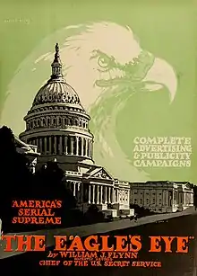 After Flynn's retirement from the Secret Service, his experiences were adapted by Courtney Ryley Cooper into a 20-part spy thriller. These were published as weekly installments in The Atlanta Constitution's magazine section during 1918. The title of the series was The Eagle's Eye: A True Story of the Imperial German Government's Spies and Intrigues in America. An episode titled "The Great Hindu Conspiracy"[lower-alpha 4] begins with a minor character named Charles E. Apgar. He is described as a "wireless expert" who is recruited to record messages from Sayville. The fictional Apgar is said to be "quite a linguist." The letter combinations hidden in the messages remind the character of Hindi. This observation is an important clue in the espionage investigation featured in the storyline.[56] The episodes were also released as a serial film titled The Eagle's Eye. Fifteen of the episodes were republished as chapters in a book in 1919, though the story with Apgar was not included.[57]