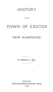 Bell was the author of an influential early history of Exeter, New Hampshire, as well as a number of other books.[3] His first wife was Sarah Almira Gilman, daughter of Nicholas Gilman; his second wife Helen A. (Williams) daughter of Reuel Williams of Portland, ME, and widow of John Taylor Gilman of Exeter. Both wives were descendants of Edward Gilman Sr., an early Exeter settler who had previously lived in Hingham, Massachusetts, and Ipswich, Massachusetts.