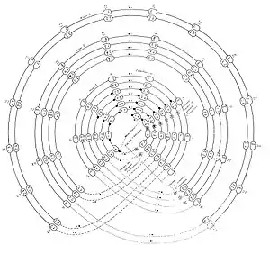- ↑ Charles Janet (1930). N. 6 - Concordance de l'arrangement quantique de base, des électrons planétaires des atomes, avec la classification scalariforme, hélicoïdale, des éléments chimiques [Concordance of the basic quantum arrangement of planetary electrons of atoms, with the scalariform, helicoidal classification of chemical elements] (in French). Beauvais: Imprimerie départementale de l’Oise.