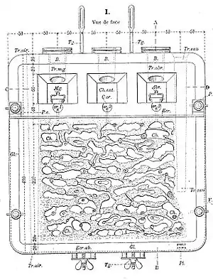 In parallel with his professional activities, Charles Janet began a university course at the Sorbonne in 1886. He was also co-opted to become a member of the French Entomological Society and the French Zoological Society. First in his class, he then began a thesis on ants and obtained his doctorate in natural sciences in 1900. Even before the end of his studies, the French Academy of Sciences regularly published his research in its reports and awarded him the Thore Prize in 1896.[8][9] In 1899, he was elected president of the French Zoological Society. In 1900, he improved his artificial nests and won great success with them at the Universal Exhibition in Paris.[10] His popularity was then large enough to attract the interest of journalists who described in detailed articles the new public's passion for ants. In 1909, the French Academy of Sciences awarded him the Cuvier Prize[11] for the most remarkable work in zoology. Around 1900, Charles Janet was a recognized entomologist among zoologists and known to the general public. However, he conducted several research in many areas in parallel. His work consisted of over 4,000 pages of scientific articles. Today, Charles Janet is perceived either as a myrmecologist from the past or as an emerging chemist.