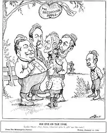 Bartholomew was born February 10, 1869, in Chariton, Iowa to Col. Orion A. and Mary Smith Bartholomew.[1] He attended the Iowa State College, graduating with a bachelor's in science, and meeting his future wife, Ella Louise Henderson. He began working as a reporter for the Minneapolis Journal before becoming one of the first daily editorial cartoonists in the world in the late 1890s. From 1899 to 1915, he produced an editorial cartoon almost every day, usually published on the front page. His cartoons were reproduced in newspapers around the world, as well as the American and European Review of Reviews. The subject of his cartoons ran the gamut from the Spanish–American War to local Minnesota politics and weather. During his time at the Journal, he also drew a number of Saturday cartoon strips, and worked as a children's book illustrator.