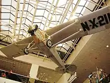 The group tried to buy an "off-the-peg" single or multiengine monoplane from Wright Aeronautical, then Travel Air, and finally the newly formed Columbia Aircraft Corporation, but all insisted on selecting the pilot as a condition of sale.[54][55][56] Finally the much smaller Ryan Aircraft Company of San Diego agreed to design and build a custom monoplane for $10,580, and on February 25 a deal was formally closed.[57] Dubbed the Spirit of St. Louis, the fabric-covered, single-seat, single-engine "Ryan NYP" (for "New York-Paris") high-wing monoplane (CAB registration: N-X-211) was designed jointly by Lindbergh and Ryan's chief engineer Donald A. Hall.[58] The Spirit flew for the first time just two months later, and after a series of test flights Lindbergh took off from San Diego on May 10. He went first to St. Louis, then on to Roosevelt Field on New York's Long Island.[59]