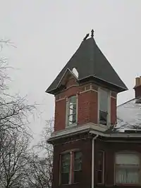 The Charles O. Boynton House is located in the DeKalb County, Illinois, city of Sycamore. The home is part of the Sycamore Historic District which was designated and listed on the National Register of Historic Places in May 1978. The Queen Anne style mansion sits on a stretch of Sycamore's Main Street that is dotted with other significant Historic District structures including, the Townsend House and the Townsend Garage. The Boynton House was designed by the same architect who designed the Ellwood House in nearby DeKalb and the David Syme House, another house in the Sycamore Historic District.[2]