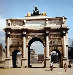 They worked on the Tuileries Palace that faced the Louvre across the Place du Carrousel and the parterres. In that prominent square, Percier and Fontaine designed the Arc du Carrousel (1807–1808), commemorating the Battle of Austerlitz,