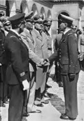 Under Laval Platon was made responsible for anti-Masonic activities.[17] The French authorities had created the anti-masonic Service des sociétés secrètes (SSS) in May 1941.[18] Platon was made chief of this service.[19] Platon ordered the expulsion of some categories of Jews from the Clermont-Ferrand region, which started in late June 1942, to make housing available for government employees. In September 1942 Platon was informed that about 70% of the Jews whose cases had been examined had been expelled.[20] In August and September 1942 Platon blamed the defeat of France by Germany on the absence of discipline, the love of pleasure and the destruction of the family. He also blamed secret societies, Freemasons, Jews and trusts. To restore the grandeur of France he called for obedience and order, total loyalty to the leader, courage, patience, honesty and discipline.[21] On 1 November 1943 Platon, as head of the SSS, reported that,