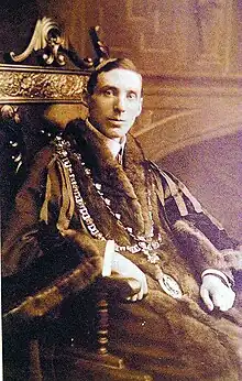Starmer was first elected a member of the Darlington Town Council in 1903, becoming an Alderman in 1915. He was Mayor of Darlington in 1907–08 and again in 1933.[5] Starmer fought his first Parliamentary contest at the 1918 general election, when he stood as an independent Asquithian Liberal in the Sedgefield constituency in County Durham.[9] He was selected to fight Darlington as an Independent Liberal for the 1922 general election,[10] but did not stand as a candidate in the event, transferring instead to the Cleveland Division of the North Riding of Yorkshire, where he came second to the sitting Conservative MP, Sir Park Goff, in a three-cornered contest with Labour. Then, at the 1923 general election he stood again in Cleveland and this time was elected Liberal Member of Parliament, defeating Goff by a majority of 1,471 votes, again a three-cornered contest. However, in the Tory revival of 1924 Starmer was unable to hold on, this time falling to third place in another three-cornered fight. He fought the seat again at the 1929 general election but again came third, albeit in a tight three-way contest.[11] He did not fight another Parliamentary election being too unwell to stand in 1931[12]