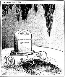 Werner won the Pulitzer Prize for Editorial Cartooning in 1939. The winning cartoon was published in the Daily Oklahoman on October 6, 1938. Titled "Nomination for 1938", it depicted the Munich Agreement which provided for the transfer of Sudetenland to Hitler's Germany. At 29 years old, Werner was the youngest person to win the Pulitzer for Editorial Cartooning.[1][2]