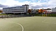 Charleston Academy opened in August 1978 on a new site to the west of Inverness. The school is part of the Charleston Academy Community Campus which consists of the school, its associated Community Centre and the Highland Football Academy. As a former School of Ambition, extensive improvements to Physical Education provision have been made in recent years. The school has two Multi Use Games Areas (MUGA) and an all-weather, floodlit astroturf pitch. Since 2012 the school has been a SFA accredited School of Football.[2] In 2015 the Albert Roux Training Kitchen was officially opened within the school. This industrial, catering quality kitchen had been developed within the Home Economics department and was used to provide vocational courses aligned to careers in the hospitality industry. Since 2010, Chez Albert Roux OBE has worked with the schools' Rector and Home Economics department [3] to establish such a facility in Inverness. The facility was named in his honour. However, the facility was closed in 2022. The school also has a history of asbestos infections.[4]