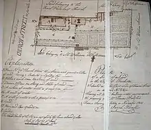 Service areas were often located in separate buildings behind the house. A single house would typically be built along one edge of a property, leaving a carriage way along the opposite side of a narrow lot. A piazza, if part of the house, would run the length of the house along the side yard which could be entered from the street. Alternatively, most single houses with piazzas have what appears to be a front door immediately on the street. However, the "front door" is in reality merely a screen between the public sidewalk and the private piazza. The actual front door for the house is located halfway along the piazza.[3]
