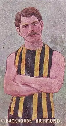 Charles 'Charlie' Roger Backhouse (1871 – 5 August 1925) was an Australian rules footballer who played in the VFA for Carlton Football Club in 1890 and between 1891 and 1905 for the Richmond Football Club.[2]