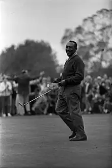 Sifford began golfing professionally in 1948.[6] He competed in the golf tournaments that black golfers organized for themselves as they were excluded from the Professional Golfers' Association of America (PGA). Sifford won the United Golf Association's National Negro Open six times,[7] including consecutive wins from 1952 through 1956.[6] Sifford later worked as a valet and golf instructor to the singer Billy Eckstine, who also financially supported his career when he was unable to find sponsorship.[8]