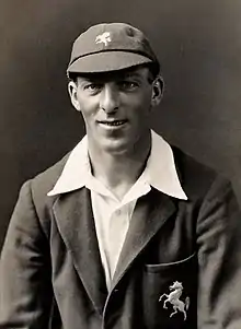 Wright and George Collins provided the seam bowling alternative to the spin of Tich Freeman and Frank Woolley which dominated Kent's bowling across the 1920s. Both his best batting and bowling performances came in the 1924 season, relatively early in his first-class career. Against Essex in June 1924 in the second innings he scored 81, putting on 157 in about 75 minutes for the eighth wicket with the debutant Alan Hilder, which stood as the Kent record for that wicket until 2007.[4] In August of the same year, he took five Somerset wickets for 33 runs in the first innings and followed that with seven for 31 in the second innings, providing both his best innings and match figures.[5] In 1925, in the match against Warwickshire, Wright was the first victim in a sequence of four wickets in five balls by the Warwickshire player Robert Cooke; in Warwickshire's second innings, Wright returned the favour with a hat-trick in which Cooke was one of his victims.[6]