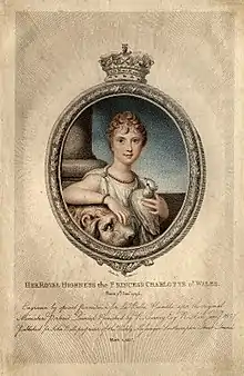 An engraving based on Sir Thomas Lawrence's painting of Charlotte, which she sat for in her final days
