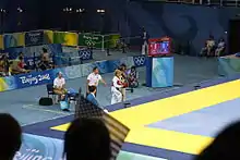 Charlotte Craig before fighting Manuela Bezzola (SUI) at the 2008 Summer Olympics
