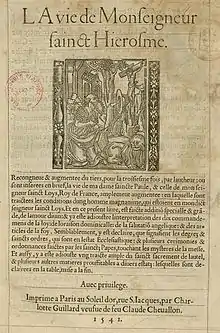 - Louis Lassere, La Vie de Monseigneur Sainct Hierosme (1541) (previously printed by Josse Badius ca. 1529)