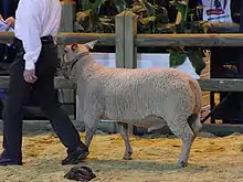 The Charollais is a breed of domestic sheep originating in east central France, in the same region in which Charolais cattle originated, Charolles and Saône-et-Loire.[1] It is known for ease of lambing and is used as a terminal sire to increase muscling and growth rate of the lambs.[2] It has been exported internationally, and is commonly used in the United Kingdom as a sire to produce market lambs from pure-bred ewes and mules.[3]