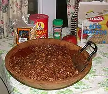 The spices used vary among cultures; Yemenites use cloves and pepper, while American Jews typically use cinnamon. In Italy, Venetian Jews have been known to add chestnuts and pine nuts. Halek is a variation made by Persian Jews using dates instead of apples.[4] Locally grown blueberries are added to the traditional recipe in Maine.[5]