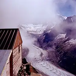 The Charpoua Hut (French: Refuge de la Charpoua) is a refuge in the Mont Blanc massif in the Alps. Built in 1904 , it is located above the north bank of the Mer de Glace under the southwest side of the Aiguille Verte at an altitude of 2,841 meters above sea level.
