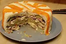 ![]() A chartreuse of Drôme guineafowl, cut to reveal the internal layers. | |