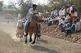 Bullock cart races are an inseparable part of this village which is very prominent throughout Pune district. Photo from 2011 race at Chas.