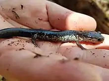 The Chattahoochee slimy salamander (Plethodon chattahoochee) is a species of salamander in the family Plethodontidae. It is endemic to the Appalachian Mountains in the United States, where it is found only in the Chattahoochee National Forest and Nantahala National Forest in the states of Georgia and North Carolina. Its natural habitat is temperate forests. It was once classified within the northern slimy salamander (P. glutinosus) until it was found to be a distinct species. Its range narrowly intersects with the northern slimy salamander, the Atlantic Coast slimy salamander (P. chlorobryonis), and the southern Appalachian salamander (P. teyahalee) and widely intersects with the red-legged salamander (P. shermani), and it is known to hybridize with the latter three.[1][2]