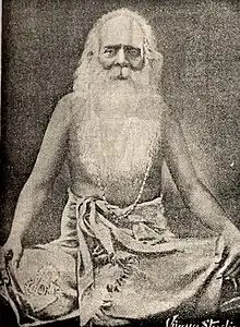 At the end of his wanderings and quest Kunjan Pillai was led to self-realisation by an avadhuta whom he met at a wayside in Vadaveeswaram a village in Tamil Nadu with whom he lived for many months in the forests without any contact with the outside world.[6] It is believed that this avadhuta belonged to the line of immortal masters of Southern India; the Siddhas who knew the scientific art for realising God. He returned to Kerala as a great scholar and saint.[7]