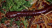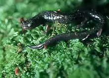 The Cheat Mountain salamander (Plethodon nettingi) is a species of small woodland salamander found only on Cheat Mountain, and a few nearby mountains, in the eastern highlands of West Virginia.[1][4] It and the West Virginia spring salamander (Gyrinophilus subterraneus) are the only vertebrate species with geographic ranges restricted to that state.