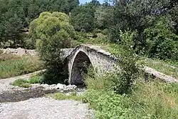 The river takes its source under the name Pardikonsko dere at an altitude of 1,695 m at 1.6 km northeast of the summit of Sveti Petar (1,745 m) in the Dabrash ridge of the western Rhodope Mountains and drains the southwestern slopes of Dabrash. The river Kanina springs from the southern slopes of the same summit.[2] The Chechka Bistritsa flows in a relatively shallow and heavily forested valley in southwestern directed for about 3 km, then turns southeast until the Dikchan state forestry, and then again continues to the southwest. It flows in that direction until the vicinity of the village of Dolno Dryanovo, where it turns south-southeast and enters the historical region of Chech, where the river valley widens. It flows into the Mesta at an altitude of 443 m some 1.6 km north of the village of Teplen, less than 2 km from the Bulgaria–Greece border.[1]