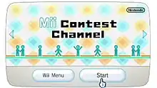 ![]() Banner of the Check Mii Out Channel (known as the Mii Contest Channel) in Europe | |
