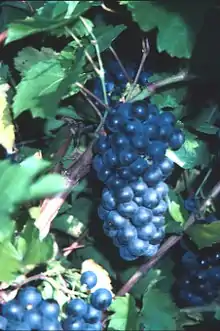 Chelois (French: [ʃəlwa]) is a variety of hybrid grape used in the production of red wines. The fruit are small blue-black berries, which appear in compact, medium-sized clusters. Chelois is among the less hardy hybrids of red-wine grapes.[1]