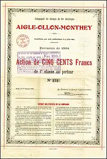 The original intention had been to construct a railway from Aigle to Villars via Ollon and the concession was awarded on 27 April 1897. The Chemin de fer Bex-Gryon-Villars, however, strongly objected to the new line, arguing that there was insufficient traffic for two lines to serve Villars. After listening to the arguments, the federal authorities agreed and the original concession was withdrawn to be replaced by a new one for a line from Aigle to Monthey via Ollon. Concession to build the line was awarded on 6 February 1899 and was followed by that for a line from Monthey to Champéry on 22 June of the same year. The latter would be built by the Chemin de fer Monthey-Champéry-Morgins (MCM).