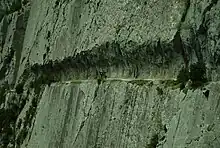 42°53′17.7″N 0°33′38″W / 42.888250°N 0.56056°W Located in the French Pyrenees mountains, the Chemin de la Mâture is a 1,200-metre (3,900 ft) path cut into a sheer rock face rising over 200 metres (660 ft) above the river Gave d'Aspe.[1] Completed by the engineer Paul-Marie Leroy in 1772,[2] the Chemin de la Mâture (literally "The Mast Road") was originally created to transport timber from the nearby Pacq forest to be used in constructing masts for French naval vessels. The path has since been incorporated into the GR 10, a long-distance footpath running along the Pyrenees from the Atlantic Ocean to the Mediterranean Sea.