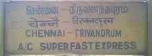 ![]() Chennai–Thiruvananthapuram AC Superfast Express | |||||