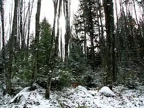 The Chequamegon–Nicolet National Forest (/ʃɪˈwɑːmɪɡən ˌnɪkəˈl/; the q is silent)[3] is a 1,530,647-acre (6,194.31 km2) U.S. National Forest in northern Wisconsin in the United States. Due to logging in the early part of the 20th century, very little old growth forest remains. Some of the trees there were planted by the Civilian Conservation Corps in the 1930s. The national forest land trees and vegetation are part of the North Woods Ecoregion that prevails throughout the upper Great Lakes region.