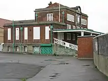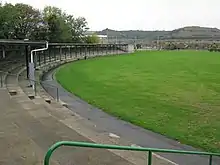 The football stadium on the site is the home ground of Folkestone Invicta F.C. who play in the Isthmian League Premier Division. It has a capacity of the football stadium is 4,000, of which 336 is seated.[4] The main Wilf Armory stand, which seated 900, was damaged by storms in 2013/14 and demolished the following summer, with a reduced number of seats moved to the Brian Merryman Stand on the opposite side of the ground. Three terraces, one of which is covered, line the other sides of the ground.[5]