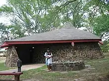 The Cherokee Heritage Center (Cherokee: Ꮳꮃꭹ Ꮷꮎꮣꮄꮕꮣ Ꭰᏸꮅ) is a non-profit historical society and museum campus that seeks to preserve the historical and cultural artifacts, language, and traditional crafts of the Cherokee. The Heritage center also hosts the central genealogy database and genealogy research center for the Cherokee People. The Heritage Center is located on the site of the mid-19th century Cherokee Seminary building in Park Hill, Oklahoma, a suburb of Tahlequah, and was constructed near the old structure. It is a unit of the Cherokee National Historical Society and is sponsored by the Cherokee Nation, the United Keetoowah Band of Cherokee Indians, and other area tribes. The center was originally known as Tsa-La-Gi but is now known as the Cherokee Heritage Center.[1]