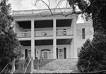 During the American Civil War, Cherry was sympathetic to the Union side.[5] From March 13 to April 29, 1862, before and after the Battle of Shiloh, his house served as headquarters for Union Army Generals Ulysses S. Grant, C. F. Smith, Don Carlos Buell, and W. H. L. Wallace.[2][4] According to Cherry family accounts, General Grant and his staff had just sat down at the breakfast table on April 6, 1862, when they heard distant cannon fire indicating that the battle had begun about 7 miles (11 km) up the river. They boarded a steamboat at the landing below the house to travel to the site of the battle, leaving their meals uneaten.[2][6] Generals Smith and Wallace died in the house in the aftermath of the battle.[2][7]