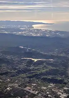 Chesbro Reservoir and Monterey Bay, aerial view from over south San Jose area