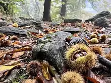 Since the 1990s, chestnut groves and chestnuts have been of interest to tourists and local communities started their revalorization.[3] Today, 98% of Swiss chestnut trees are found on the south side of the Alps (Ticino and the Grisons),[4] for instance in the Malcantone and Val Bregaglia. Chestnut groves are also found in Valais, particularly in Fully and Saint-Gingolph,[5] and various other locations around Lake Lucerne and the Walensee.[6]