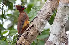 The chestnut woodpecker (Celeus elegans) a species of bird in subfamily Picinae of the woodpecker family Picidae. It is found on Trinidad and in every mainland South American country except Argentina, Chile, Paraguay, and Uruguay.[2]