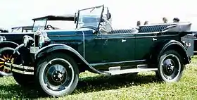 The Chevrolet Series AA Capitol (or Chevrolet Capitol) is an American vehicle manufactured by Chevrolet in 1927. Launched in the year Ford changed from the Model T to the Model A, Chevrolet sold 1,001,820 Series AA cars,[2][3] and under the direction of General Manager William S. Knudsen Chevrolet would overtake Ford’s dominance in the market internationally.[4] The GM introduction of the GM A platform also introduced yearly appearance changes while using a corporate appearance from the newly established Art and Color Section headed up by Harley Earl which meant the Chevrolet Capitol and the Cadillac Series 314 shared a common appearance as both cars, as well as Oakland, Oldsmobile and Buick used Fisher Body, now owned by GM, as the sole provider of coachwork. Individuality between the brands was defined by the manufacturer of the engine, which was brand exclusive, and badging on the radiator. This model documents that the accelerator pedal was introduced as previous generations used a throttle installed in the center of the steering column along with the installation of a gas gauge installed in the dashboard and a centrally installed rear view mirror.[2]