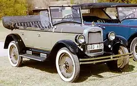 The Chevrolet Superior Series F was launched in 1923, manufactured by Chevrolet for four years with a different series per year. The 1923 model was known as the Series B, the 1924 model was the Series F, for 1925 it was known as the Series K and the 1926 Superior was known as the Series V. It was replaced in 1927 by the Series AA Capitol. It was the first Chevrolet that didn't have a larger companion model and was the only car sold by Chevrolet in several body style configurations all supplied by Fisher Body. Each year new mechanical changes, appearance updates or optional features that became standard in subsequent years became expected of all GM products including Chevrolet. Body styles were separated into open and closed which meant closed included retractable glass in the doors and glass surrounding rear seat passengers. Standard items included tools, a jack for tire removal, speedometer, outside lockable door handles, ammeter, oil pressure gauge, dashboard light, choke pull knob, electric horn, ignition theft lock, and a two piece vertical ventilating windshield that allowed fresh air to enter the passenger compartment. Wheels were 30" and came standard with hickory wood spokes or optional pressed steel discs. For 1925, bumpers were offered optionally along with outside side view mirrors, heater for passenger compartment and a clock.[2]