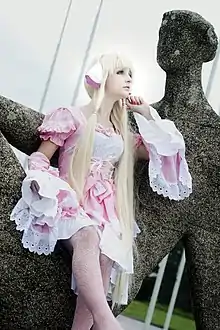 Reviews of Chi's character have been mostly positive. Nanase Ohkawa of Clamp stated: "We had a lot of letters with comments saying Chi was really cute" [2] THEM Anime Reviews critiqued Chi for being a main character but "not having a personality" in the series.[33] Tony Chen from Anime News Network said that "The way Clamp executes the development of Chi's character, growing her from what is basically the mental equivalent of a five-year-old child to a much more intelligent and complex being, is not only clever but also very cute."[34] On the website Screen Junkies, Chi is ranked number 3 of 10 of a "Top 10 anime girls" pick and number 6 of 10 for best anime couples (Chi and Hideki).[35][36] In his book The Anime Machine: A Media Theory of Animation, Thomas LaMarre describes Chi as "lighter than air" and a "slight slender undefined" body and with not much potential for physical movement. Thomas also describes Chi as "bony" and skeletal" in a physiological way and compares her to a curled up cat when reclining.[37] Chi is also a cosplayed character by fans at anime conventions and related events.[38]