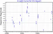A light curve for Chi Aquarii, plotted from Hipparcos data[9]