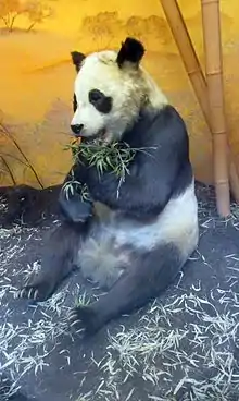 Chi Chi was born in the wild in Sichuan, China. She was caught in May 1955 in Baoxing, Sichuan, and moved to the Beijing Zoo in June. In May 1957, Kliment Voroshilov made a request for a panda for the Moscow Zoo during his visit to China, and she was sent to Moscow with another panda in the same month. However, the attempts to mate them were unsuccessful due to sexual imprinting as a result of being reared by human keepers.[3][4] The Russians suspected that both pandas were male, and as a result, the Soviets returned Chi Chi to China in exchange for another panda in January 1958.[2] In May of the same year, the Austrian animal broker, Heini Demmer, acquired Chi Chi from Beijing Zoo in exchange for an impressive collection of African hoofstock and brought the animal back to Moscow Zoo. After resting for a week, the panda journeyed to Tierpark Berlin, the zoo in East Berlin. By then, Chi Chi had already been sold to Brookfield Zoo in Illinois, United States. However, the Treasury Department stepped in and announced that the US trade embargo on goods from China extended even to pandas.[5] Chi Chi was thus refused entry to the US.